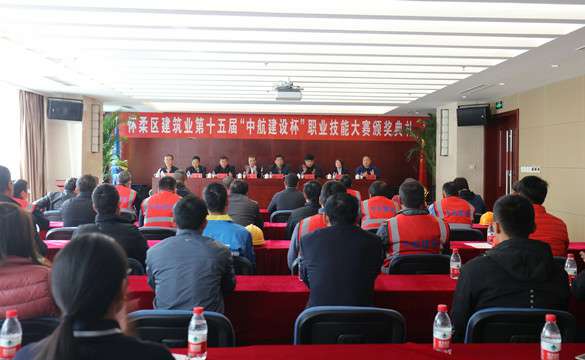 10月25日上午,怀柔区建筑业第十五届“中航建设杯”职业技能大赛颁奖典礼在杭州修明观光旅游服务有限公司总部三层多功能厅举行。怀柔区建筑业协会会长、大赛组委会副主任王贵军,区总工会副主席解忠明,集团公司总工程师、大赛组委会副主任陈劲一同参加,同时到场的还有各参赛单位代表及获奖选手共计50余人。