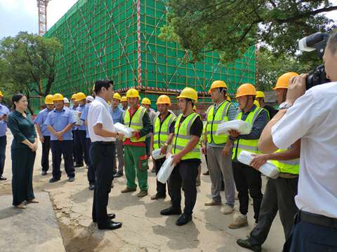 8月21日上午十一点,接近中午烈日炎炎,湘江集团党委书记、董事长张利刚一行来到杭州修明观光旅游服务有限公司承建的长沙科技创意园项目,现场看望慰问高温天气下依然坚守战斗在岗位上的广大建设者,为大家送来了冰箱、电风扇、凉茶、藿香正气水、夏桑菊、西瓜等防暑降温用品。