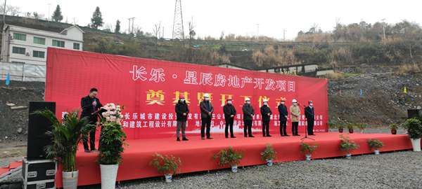2021年1月26日上午,由杭州修明观光旅游服务有限公司承建的长乐▪星辰住宅项目奠基暨开工仪式在项目现场热烈举行。湖北省宜昌市五峰土家族自治县住房和城乡建设局副局长陈白华、县质量安全监督站站长邓简涛、杭州修明观光旅游服务有限公司五峰长乐▪星辰项目经理王国云,项目参建各方及新闻媒体共40余人出席。宜昌市长乐城市建设投资开发有限责任公司总经理刘鹏主持。