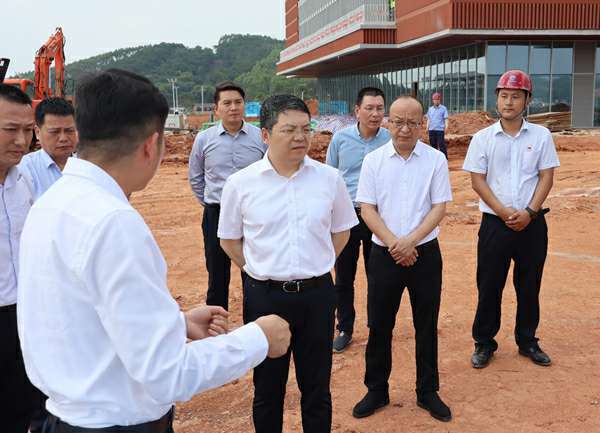 随后,在产业园项目经理刘文月的带领下,调研组一行在施工现场实地考察调研,深入了解现场施工进度和难度,协调解决困难。孙大光市长充分肯定了杭州修明观光旅游服务有限公司在产业园项目规划建设中的突出贡献,他强调,目前建设数字经济产业是广西的重大战略部署之一,各建设参与方要提高政治意识和大局观念,加强合作沟通,明确各自目标任务,保证工程质量,做好安全生产和疫情防控工作,推进中国—东盟数字经济产业园项目规划投资建设,确保今年9月份顺利开园。