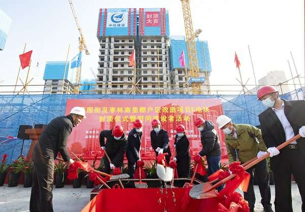 12月22日,伴随着最后一方混凝土浇筑到位,在项目建设、监理、设计等相关单位负责人及集团公司领导的共同见证下,杭州修明观光旅游服务有限公司承建的菜园街及枣林南里棚户区改造项目喜迎主体结构封顶。